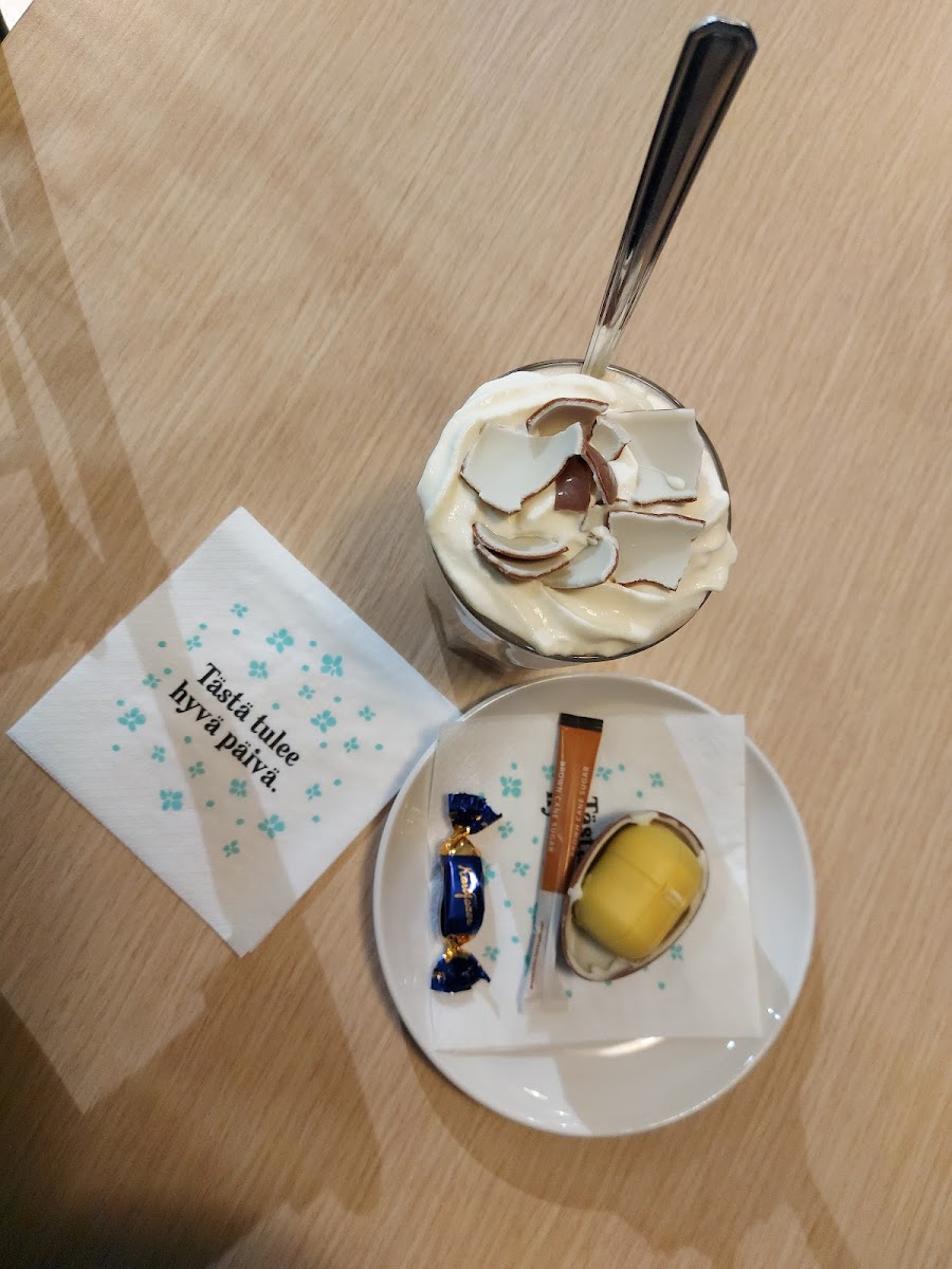 Aivan mahdottoman hyvä aamiainen: gluteeniton tortillarulla, cafe mocha ja tuoremehu. Palvelu iloista sekä asiantuntevaa. Oli useampi gluteeniton vaihtoehtokin tarjolla. Siisti yleisilme