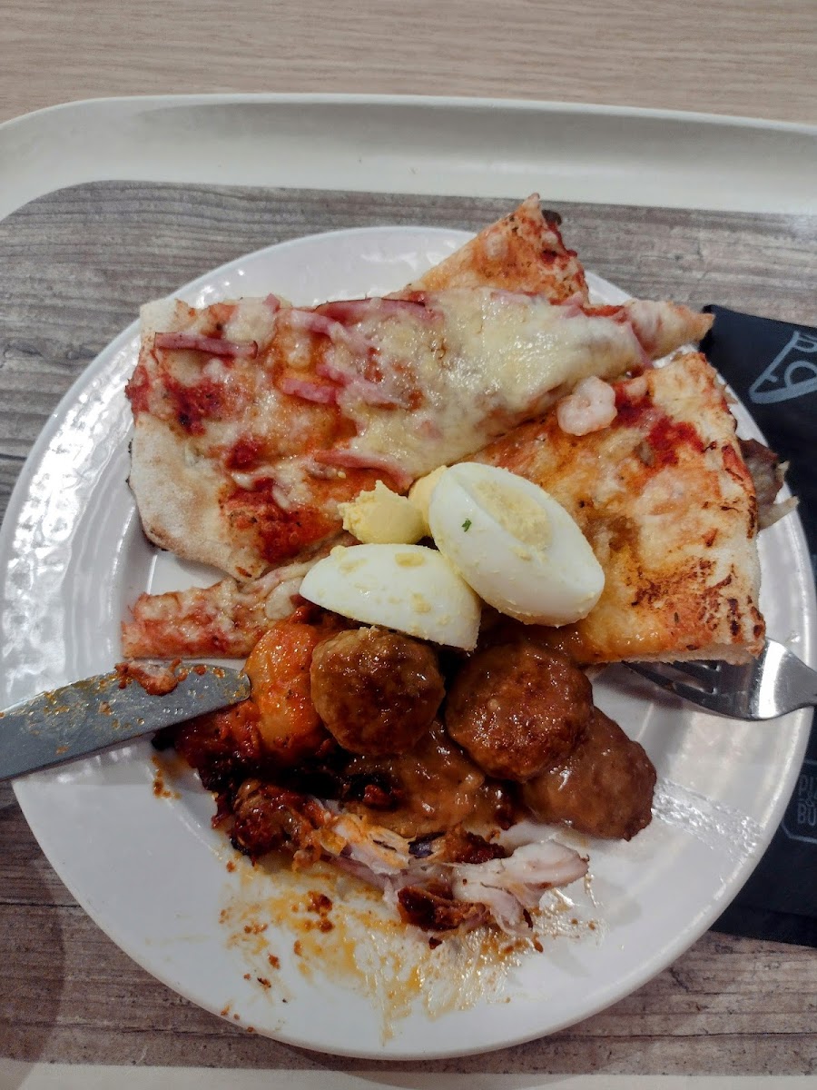Você pode ficar comendo até não aguentar mais kkkk, muito boa massa da pizza, refrigerante, café, chá, suco, saladas, arroz, comida piscante, meu deus é maravilhoso.